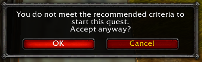 ![]() Warning if a player chooses to accept a quest which they don't meet the recommendations for |